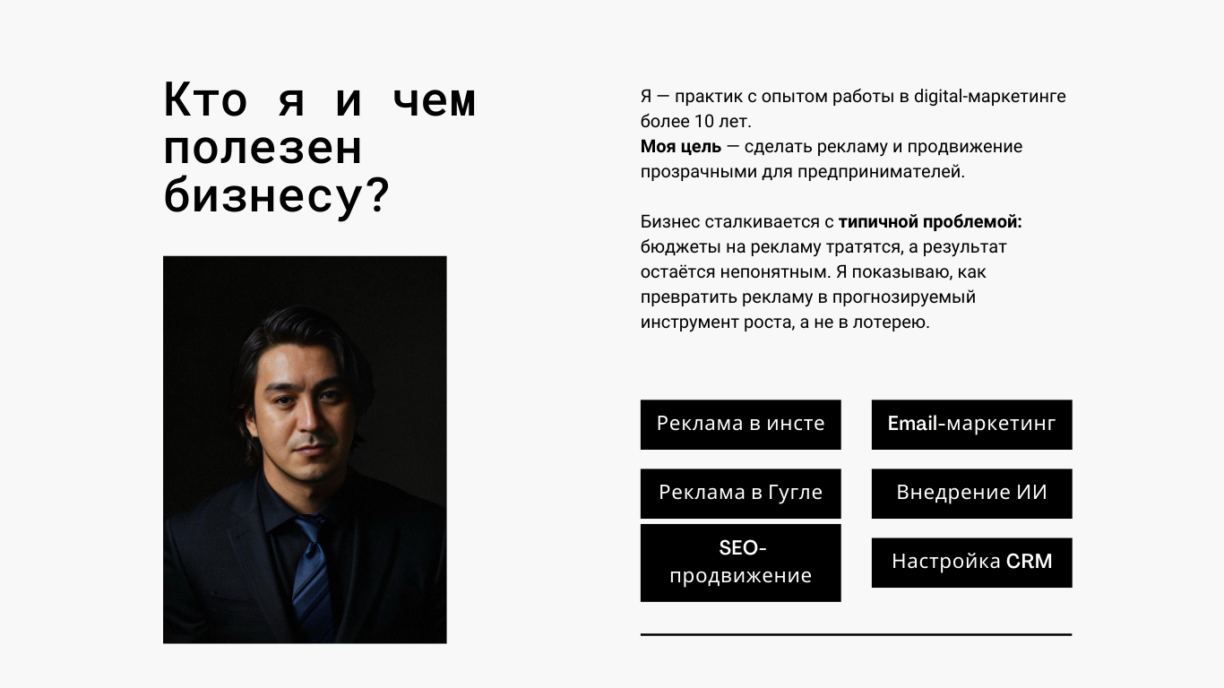 Помогаю предпринимателям получать клиентов из Instagram, Facebook, Google, Яндекса и других каналов.